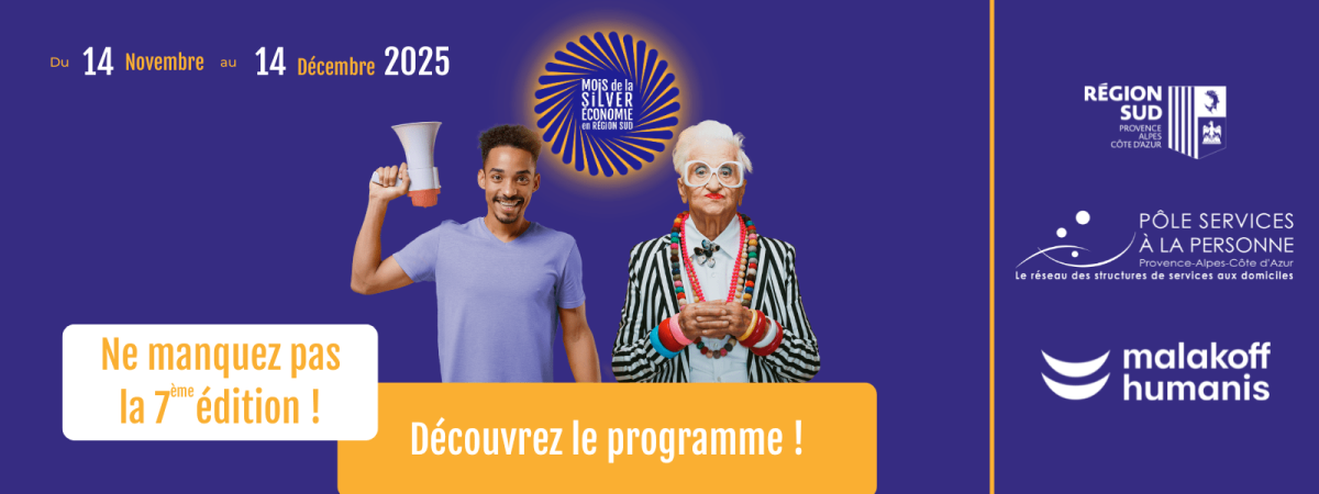 Le Pôle Services à la Personne, en partenariat avec la Région Sud et Malakoff Humanis, organise la 7ème édition du Mois de la Silver économie en région Sud.