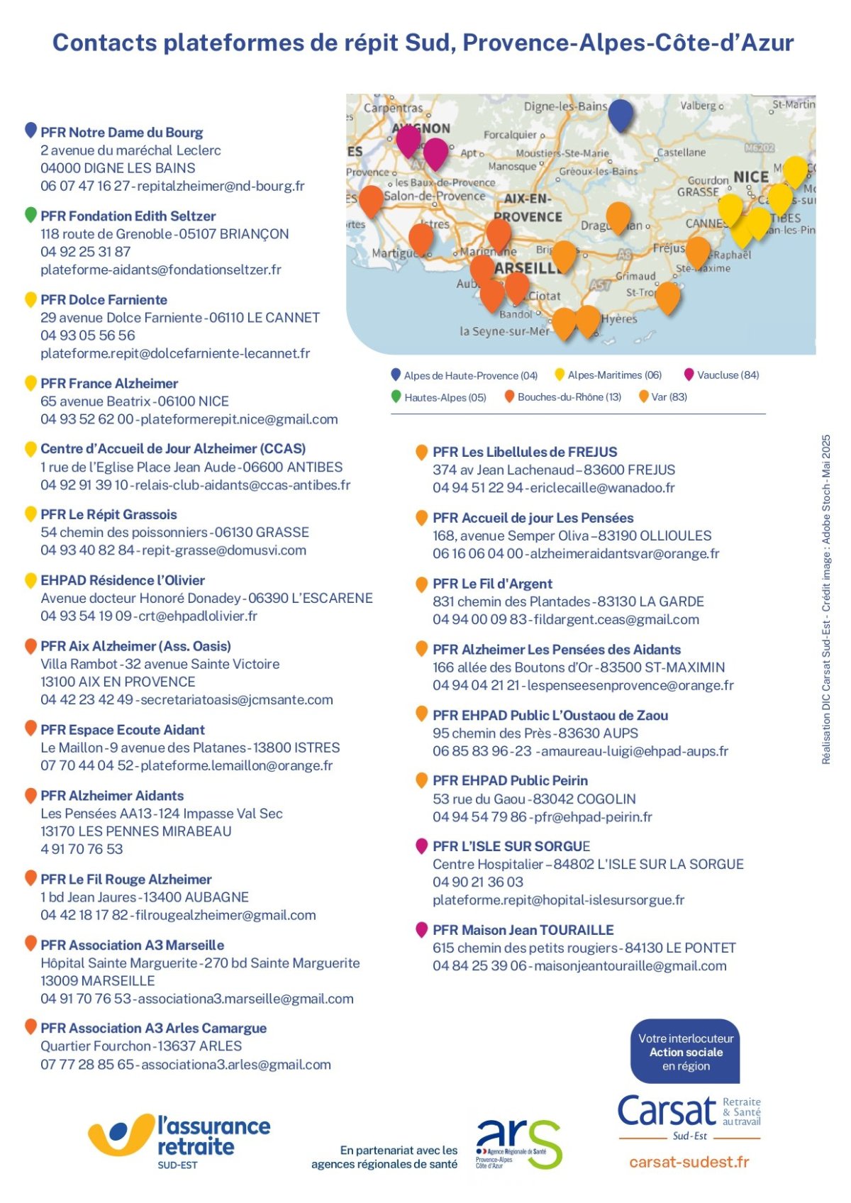 Retrouvez ci-dessous les informations et contacts des plateformes de répit de la région Sud : 👇